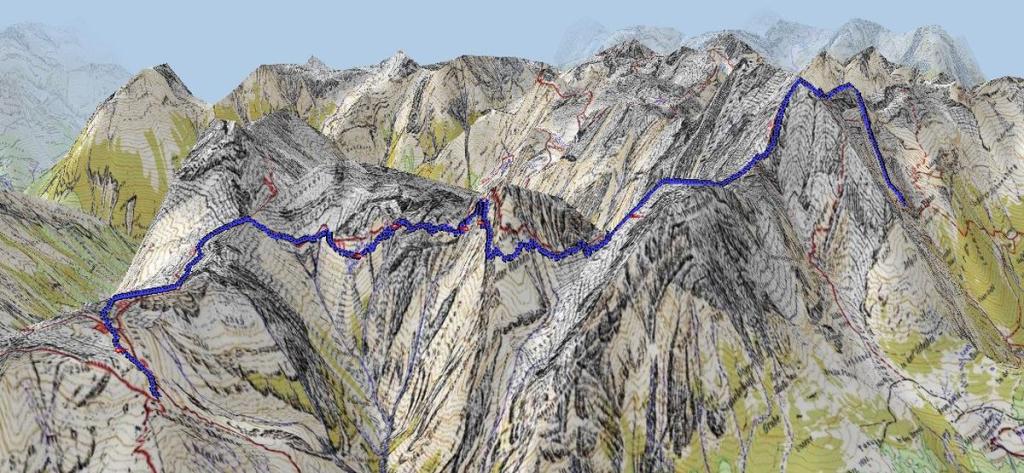 Hier trinken wir wieder etwas, wir sind schon einige Stunden am Weg. Die reine Entfernung und Höhe ist weniger das Problem, es sind die anspruchsvollen Stellen, die immer wieder Zeit kosten.