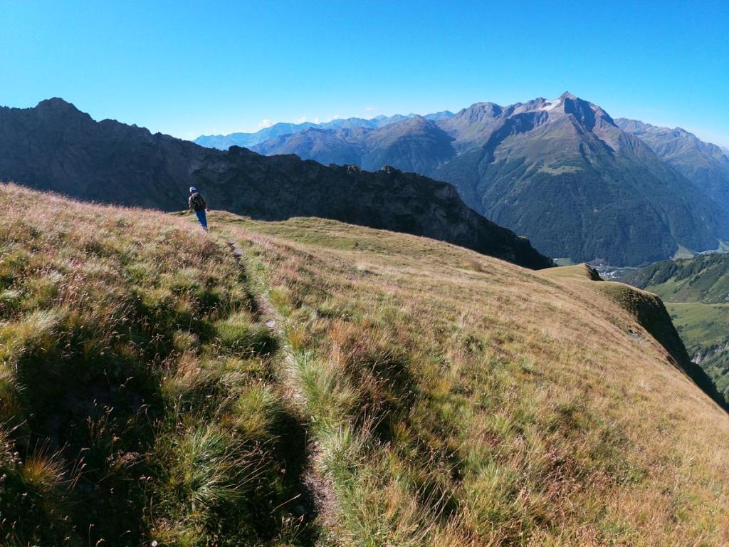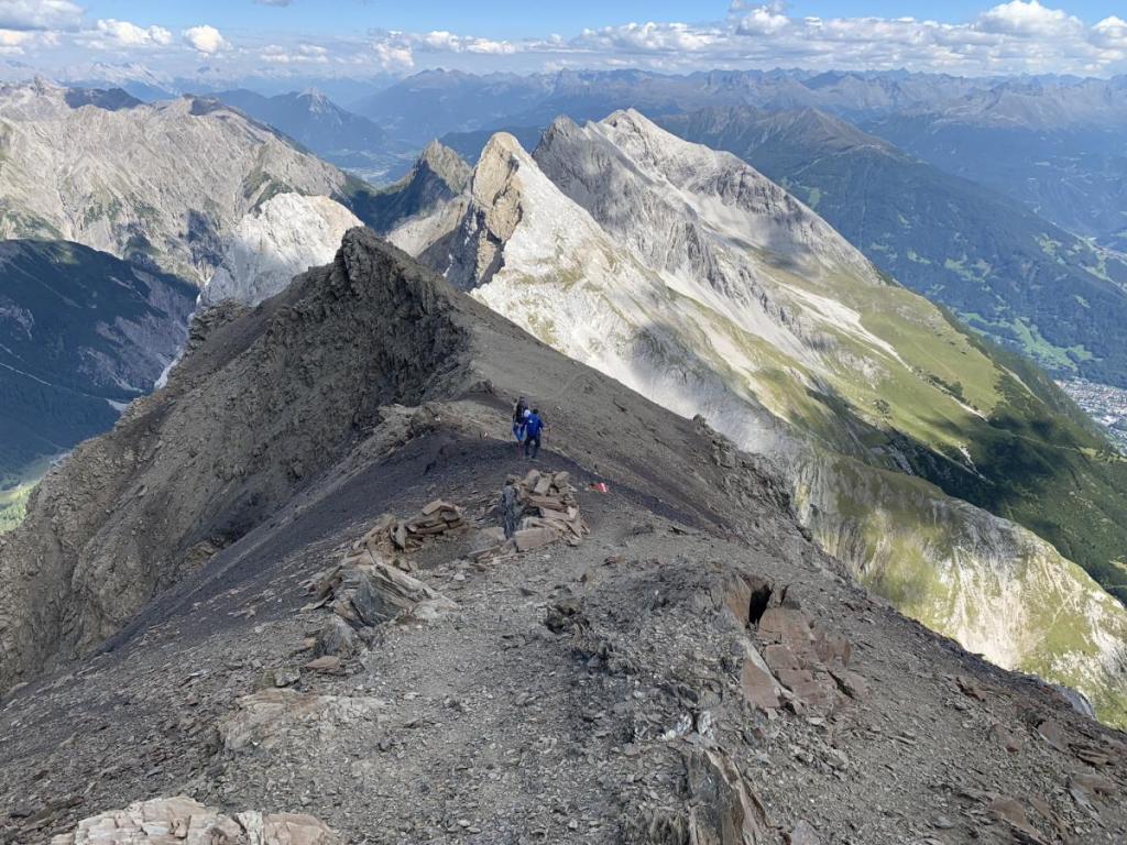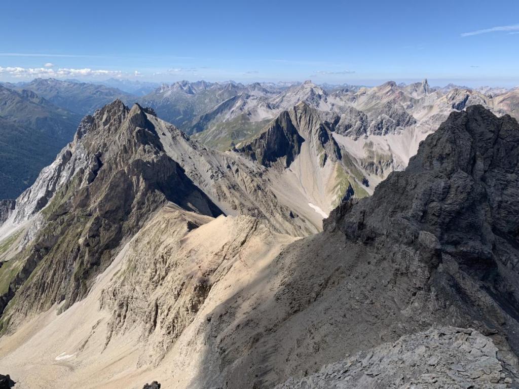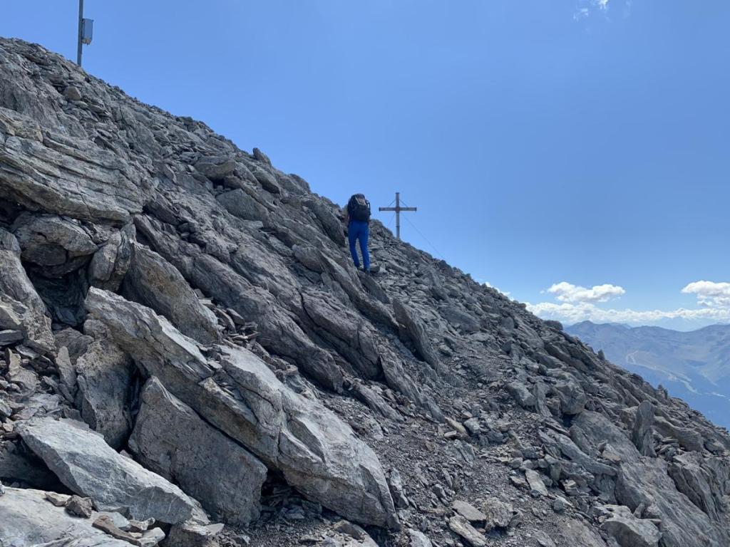 Obwohl der Gipfelaufbau des Gatschkopfs recht unspektakulär aussieht, hat es der Abstieg nochmals in sich. Nicht die technischen Schwierigkeiten stehen hier im Vordergrund…