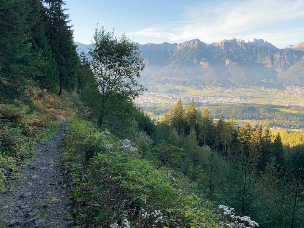 Im unteren Teil, kurz vor Sistrans, probiere ich heute ein paar Abkürzungen aus, die mich immer wieder auf den rechten Weg zurückführen. Schließlich erreiche ich den Wanderparkplatz in Sistrans.