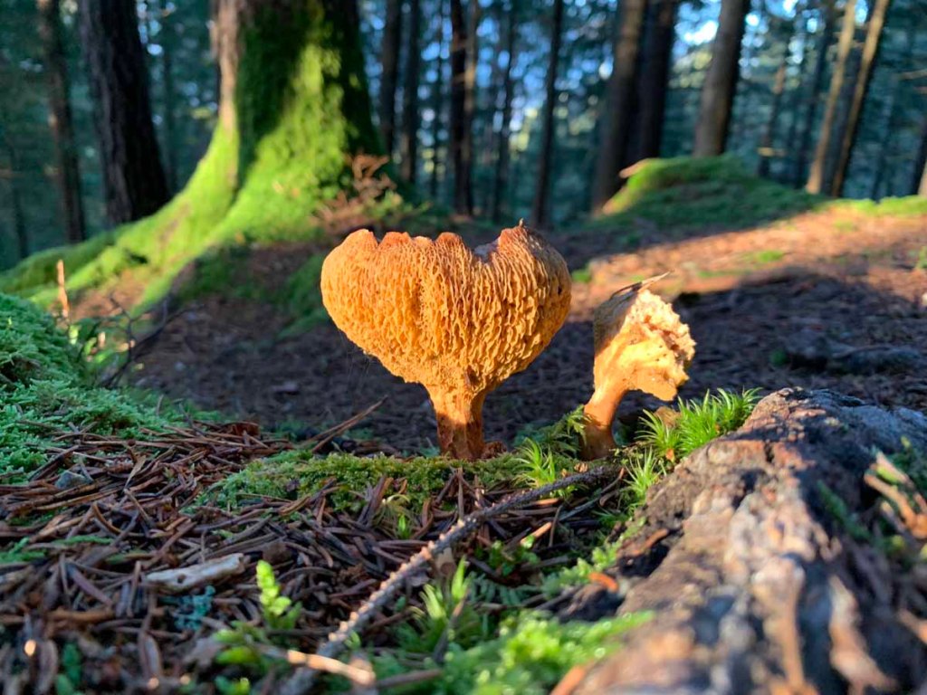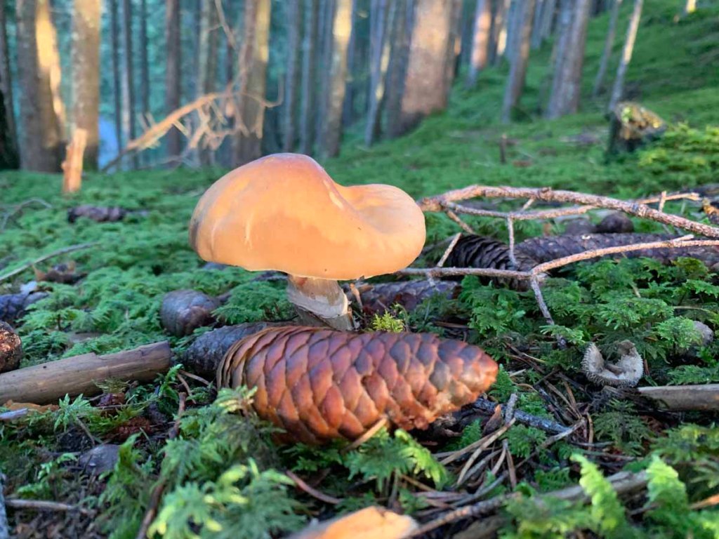 Herbstzeit ist Pilzzeit, das weiß jedes Kind. Obwohl ich keine mir bekannten essbaren Pilze entdecke (abgesehen von einem Maronenröhrling), muss ich feststellen, dass der ganze Waldboden übersäht ist mit den kleinen und größeren Wunderpflanzen.