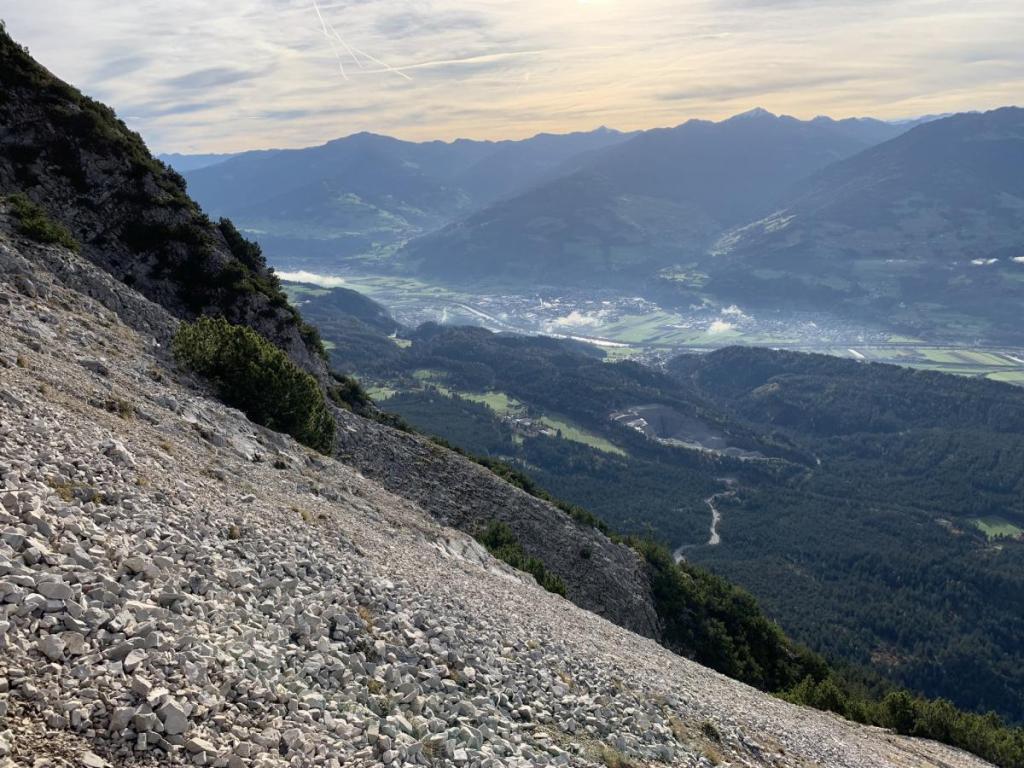 Ich habe nun gut an Höhe gewonnen, der Ausblick ins Halltal öffnet sich mehr und mehr.