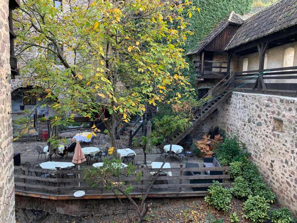 Im Hof ist eine kleine Schank, die uns sofort ins Auge sticht, dort werden wir nach dem Rundgang noch einkehren.