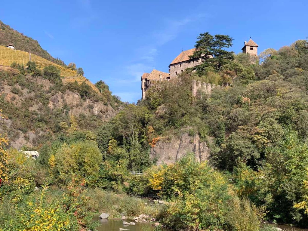 Am nächsten Morgen steht Schloss Runkelstein, die sogenannte Bilderburg auf dem Programm. Wir spazieren der Talfer entlang nach Norden, vorbei an kleinen Schlössern, Villen und Weinbergen.