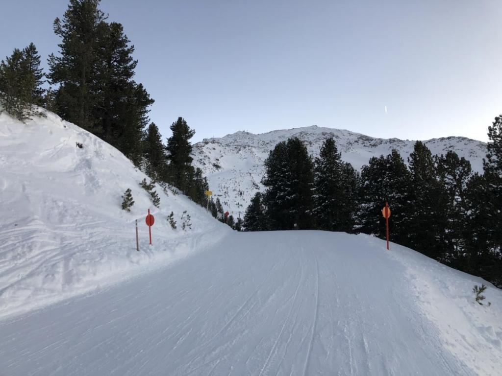 Dieser Abschnitt ist nach dem ersten steilen Anstieg immer eine willkommene Raststrecke, speziell wenn man wie ich die Lifttrasse recht flott raufgegangen ist. Ich verzichte auf den schöneren Aufstieg über die Nordflanke und bleibe weiterhin auf der Piste…
