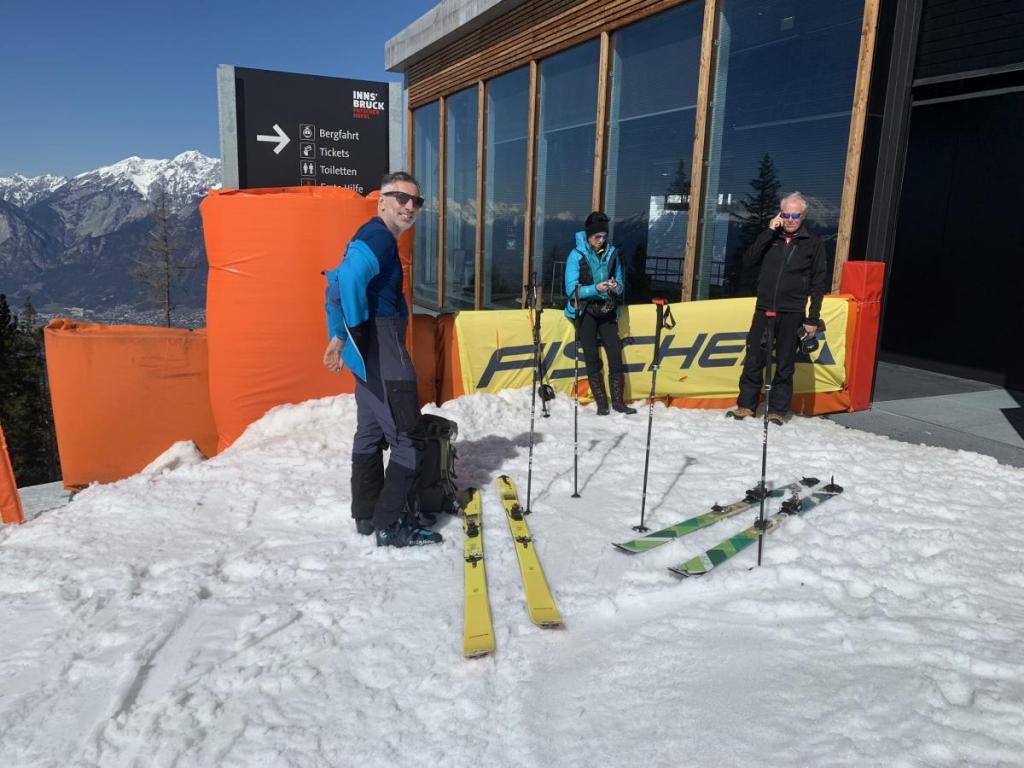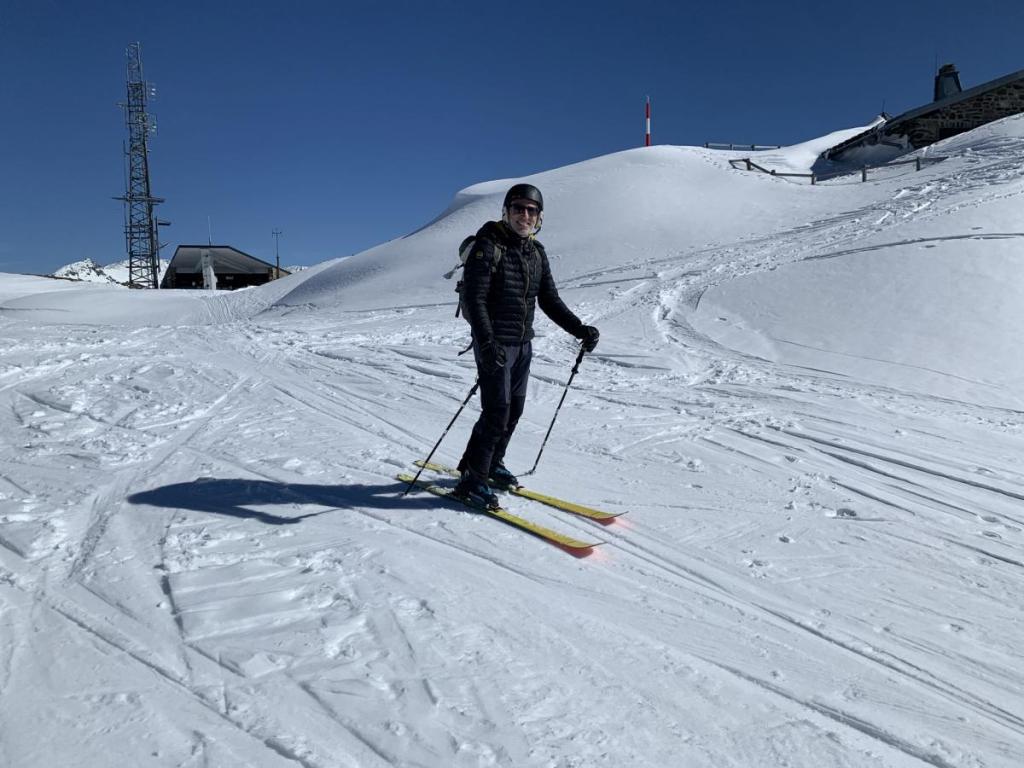 Den Gipfelhang trauen wir uns dann doch nicht ganz abzufahren, nicht wegen einer Gefährdung, sondern weil einfach im unteren Bereich der Schnee fehlt…