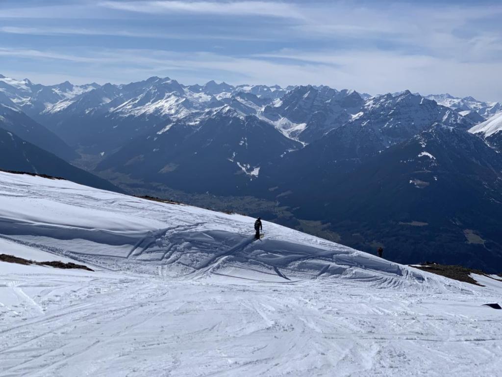Trotz vielem Sonnenschein in den letzten Tag ist die Schneedecke noch überraschend gut. Bis zum Gipfel haben wir eine geschlossene Schneedecke.