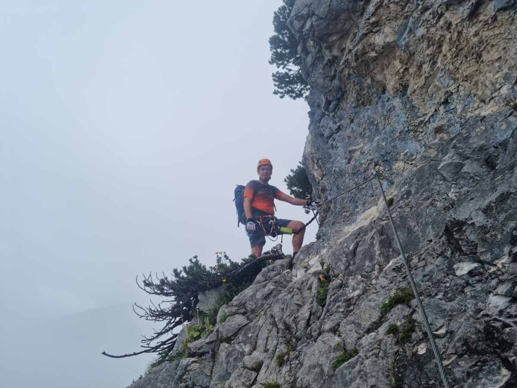 Während Papa und ich rasch über den Normalsteig aufsteigen, sind Maggo und Daniel voller Genuss im Klettersteig. Ein paar rutschige Stellen an den Platten sind vorhanden, aber generell ist der Steig gut zu gehen.