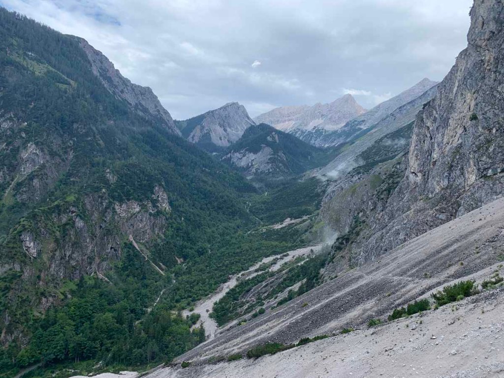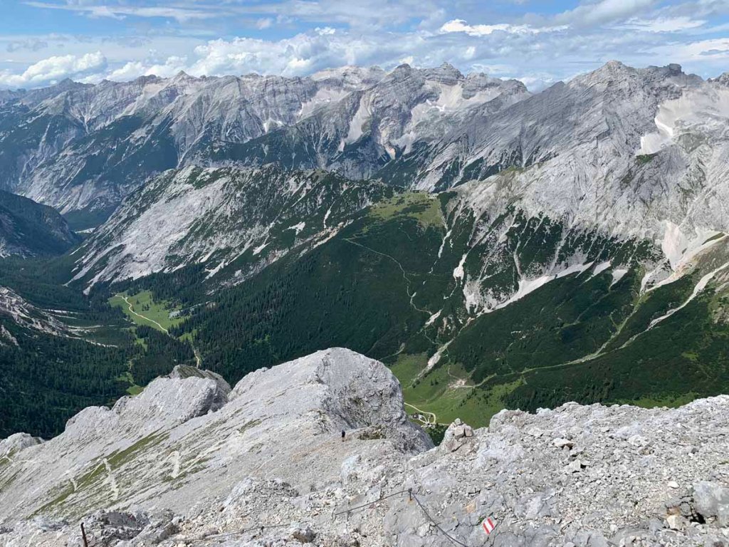 Die Aussicht in den Issboden und ins Tal des Lafatscherbachs, auch Isarursprung genannt, ist beeindruckend.