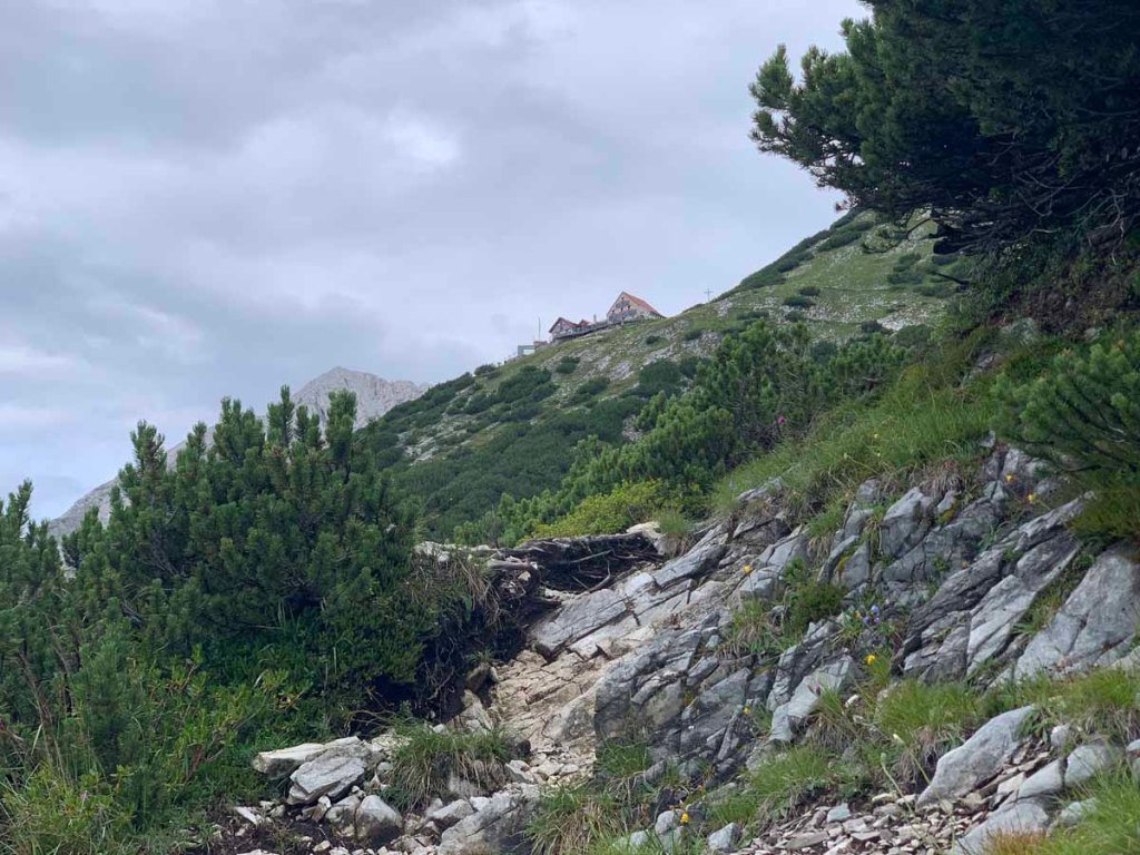 Am sogenannten „Juchizer“ sehen wir dann die Hütte das erste Mal, doch trotz vermeintlicher Nähe zieht sich der Weg zur Hütte ganz nett…