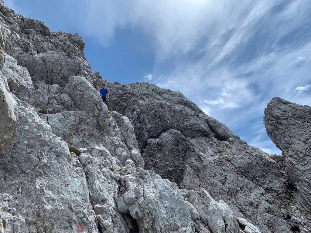 In angenehmer Kraxelei bewegen wir uns zum Gipfel, immer wieder tauchen neue Impressionen auf, ein sehr schöner Weg führt hier zum Gipfel.