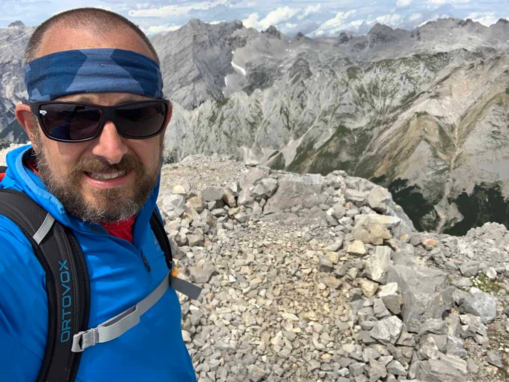 Der letzte Aufschwung zum Gipfel besteht wieder aus wunderbarstem Karwendelbrösel, es ist aber nicht ausgesetzt oder schwierig.