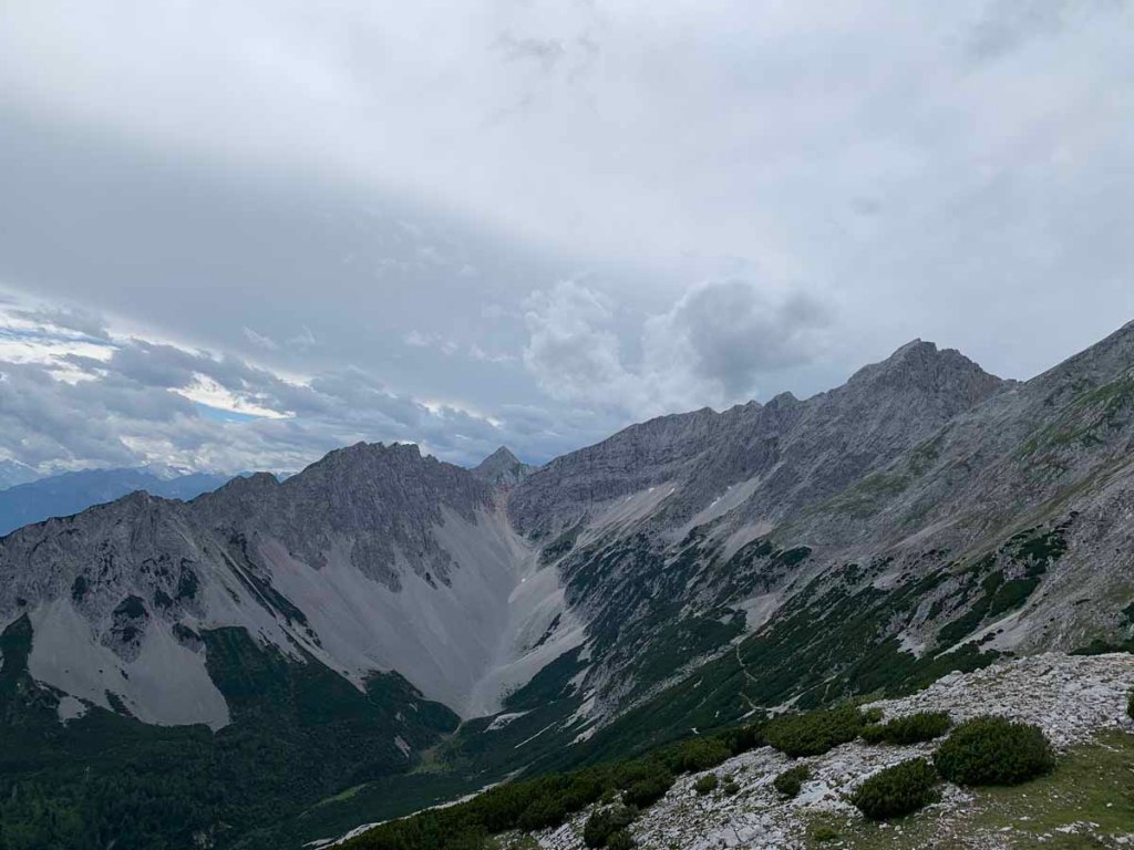 Ein Blick ins zentrale Karwendel offenbart und Blicke auf die Hinterautal-Vomper-Kette mit dem höchsten Gipfel des Karwendels: der Birkkarspitze (2.749m). Ein lohnendes Ziel, das auch noch auf der Liste steht…
