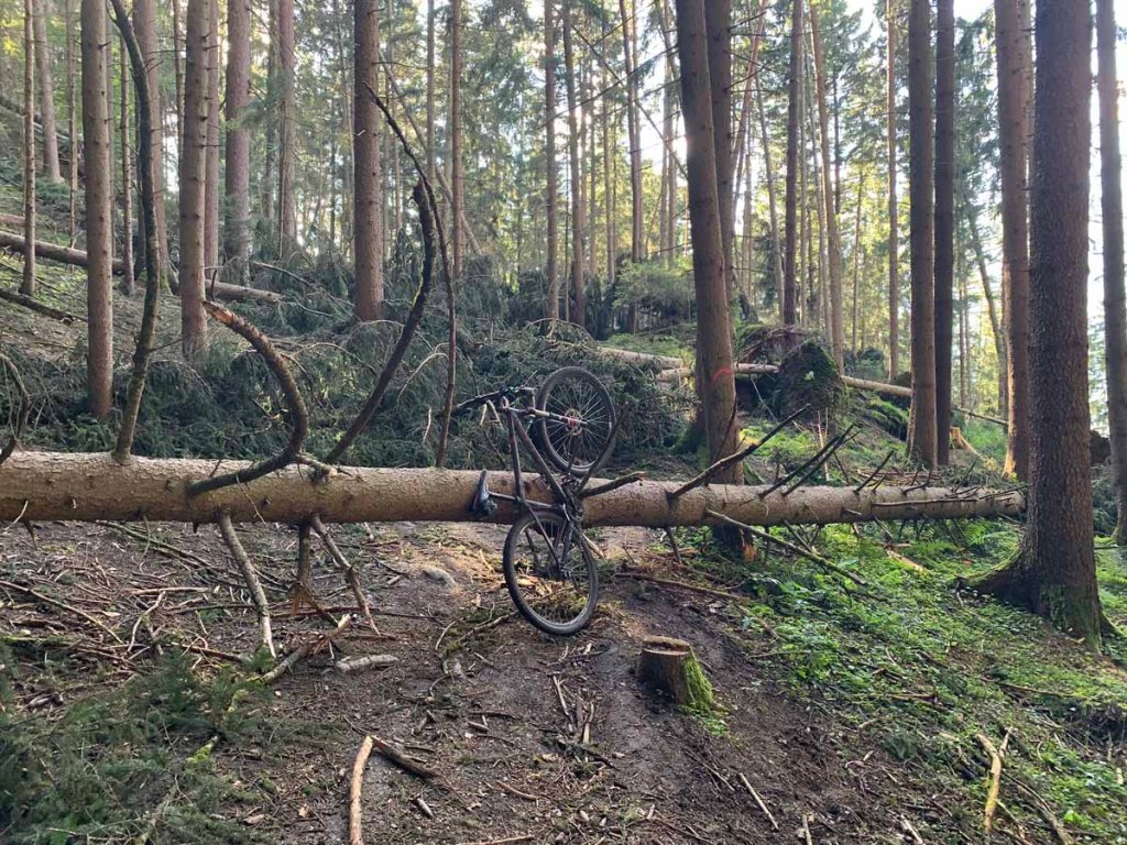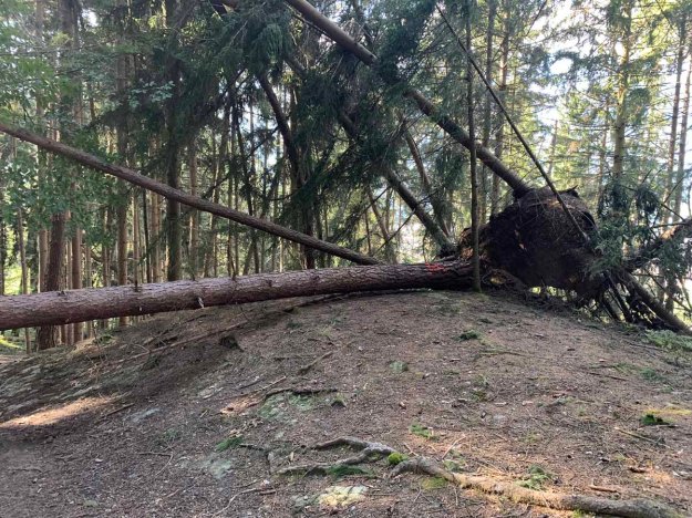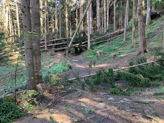 Der Wald ist hier zum Sperrgebiet erklärt worden, da zum Einen die Aufräumarbeiten im vollen Gange sind und zum Anderen auch nicht sichergestellt werden kann, dass noch was nachrutscht. Daher sollten die Sperren berücksichtigt werden…