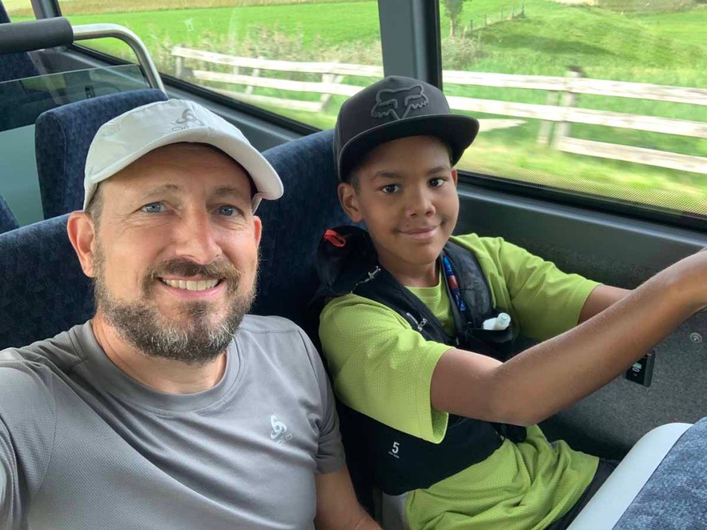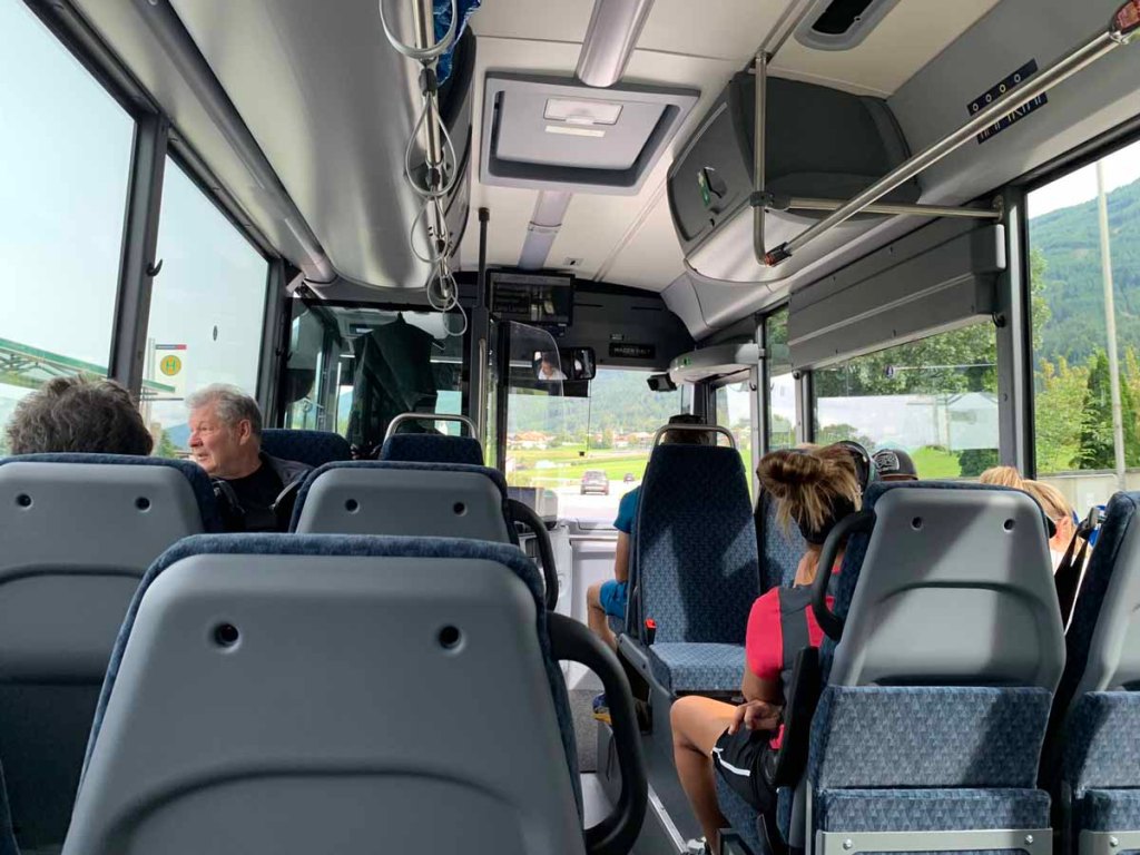 Von der Gondel aus sehen wir schon unseren Bus, ein kurzer Sprint und wir schaffen noch den Anschluss.
