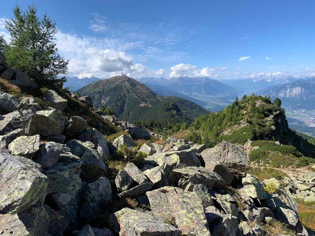 Zufrieden erreichen wir unseren letzten Gipfel für heute. Den Patscherkofel lassen wir aus, da sind wir uns einig. Schon lange genug sind wir am Weg.