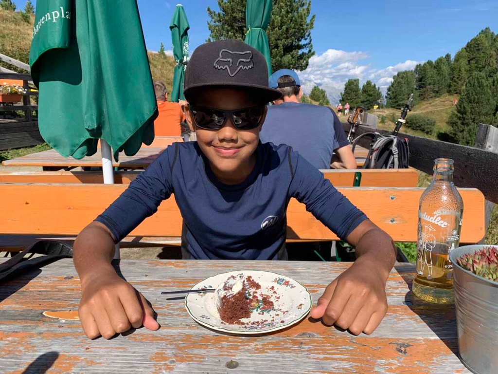 Nun ist endlich Zeit für eine Pause, leider gibt es keinen Kaiserschmarren, dafür einen guten Schokoladenkuchen. Das ist ein würdiger Ersatz und füllt unsere Speicher wieder auf.