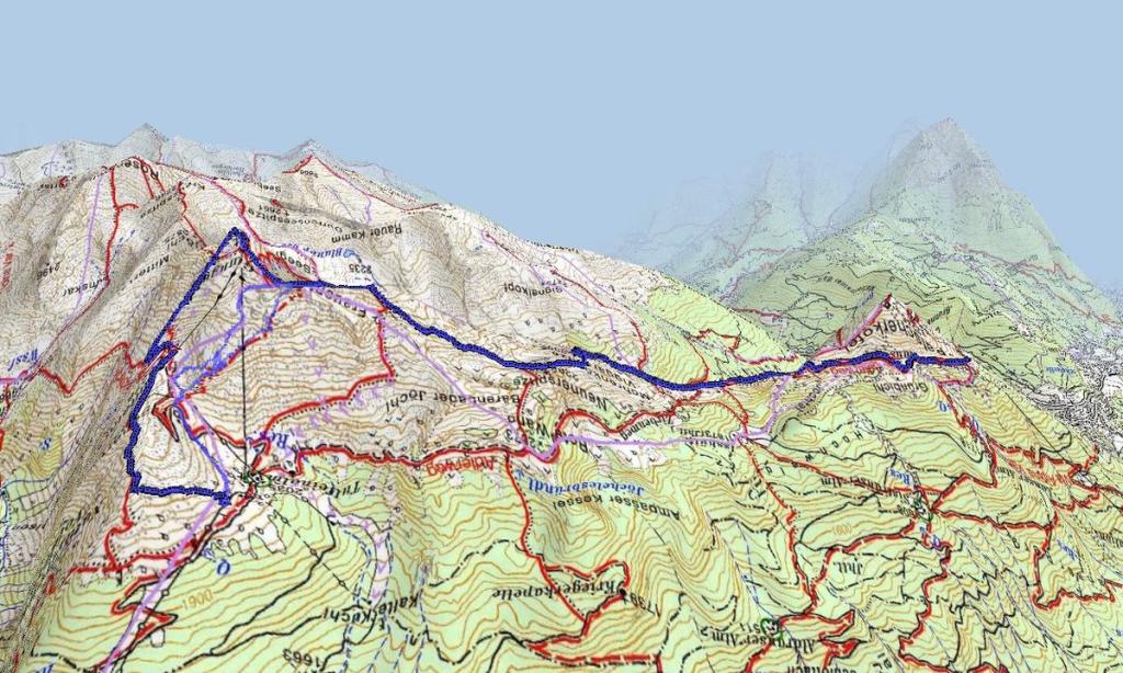 Wir folgen eine Weile dem offiziellen Weg ins Frauental, dann zweigen wir auf eine direkte Route Richtung Neunerspitze (2.285m) ab. Über Blockwerk, weglos nähern wir uns der Aufstiegsspur auf den vierten Gipfel.