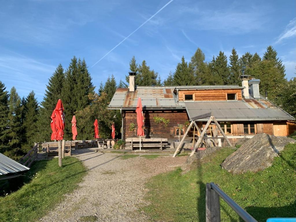 Die Hütte strahlt letzten Abendlicht, Besucher und Pächter sind allerdings schon ausgeflogen. Um diese Jahreszeit hat die Hütte nur bis 18:00 Uhr geöffnet…