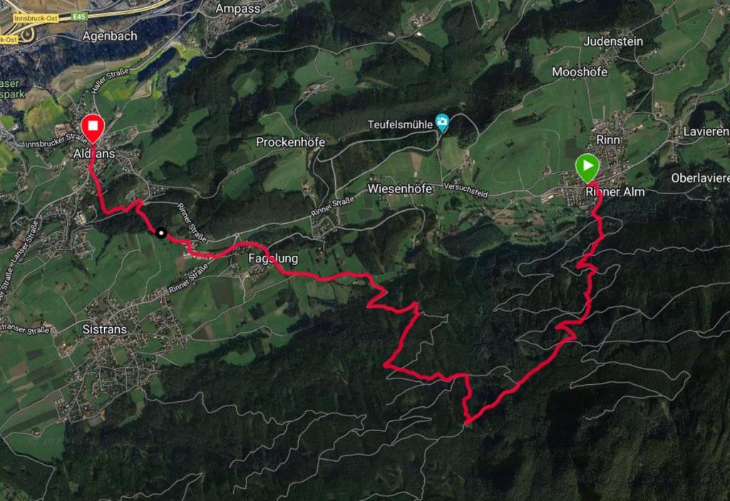Das Wetter ist aktuell noch super, allerdings ist über Nacht eine Kaltfront angesagt, daher beschließe ich kurzfristig, meine Runde über die Almen zu machen. Von Rinn aus geht’s wieder los über den „Rinner Alm Steig“.