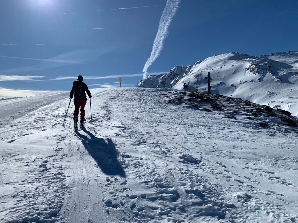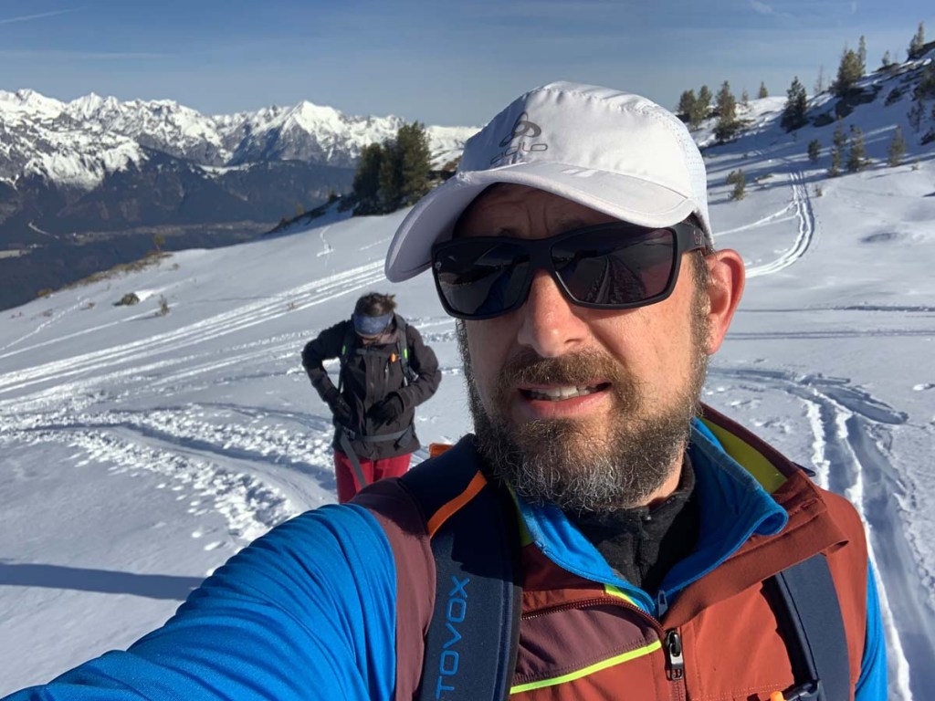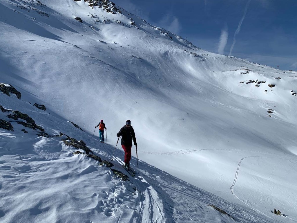 Bei schönstem Wetter starten wir ein paar Meter über die Piste, dann zweigen wir auf den Sommerweg zum Schartenkogel ab. Ab hier ist es eine feine, aber auch sichere Tour zu unserem ersten Ziel.