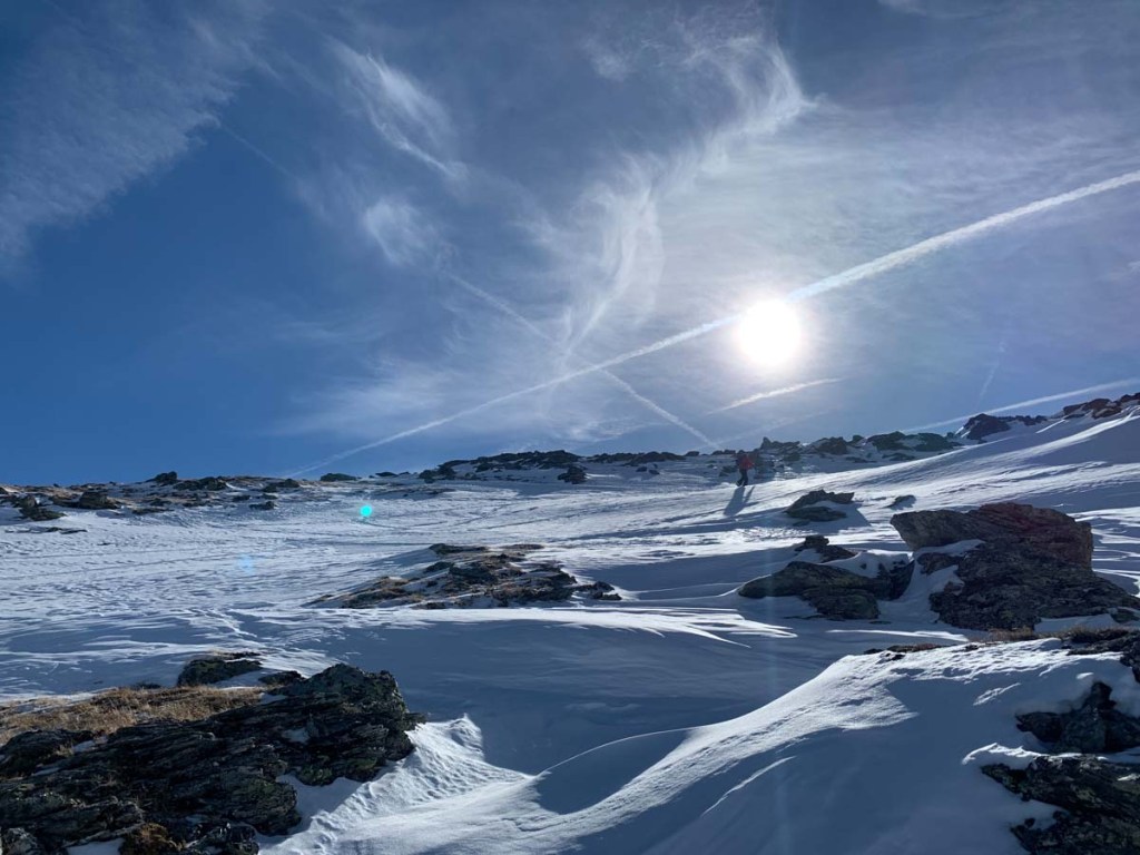 Der Wind leistet gerade am Glungezer immer ganze Arbeit. Fast schon verwunderlich, dass noch eine geschlossene Schneedecke zum Gipfel vorhanden ist.