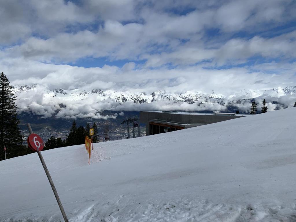 Der Pulsschlag fährt langsam wieder runter, und nach kurzer Zeit eröffnet sich der Blick auf die Bergstation der Patscherkofelbahn. Ich habe es geschafft.