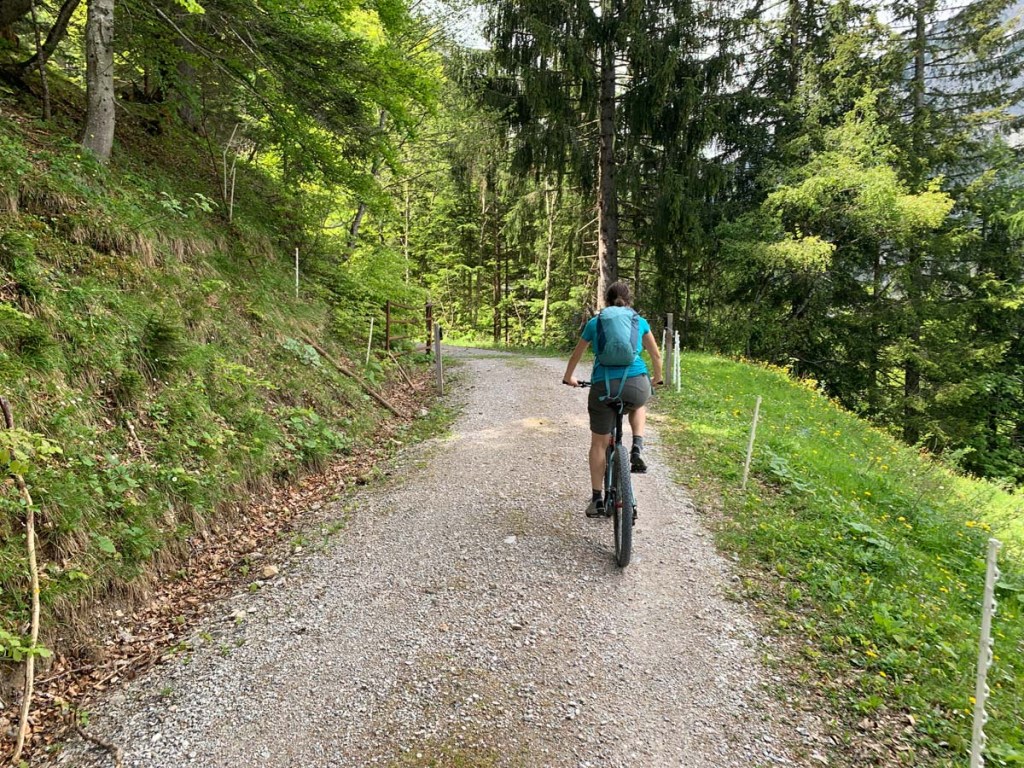 Wir starten am Wanderparkplatz bei der Mautstraße zur Hinterhorner Alm. Zuerst müssen wir ein Stück der Straße entlang fahren. Allerdings ist dieser Weg nicht so stark befahren und wir kommen gut voran.