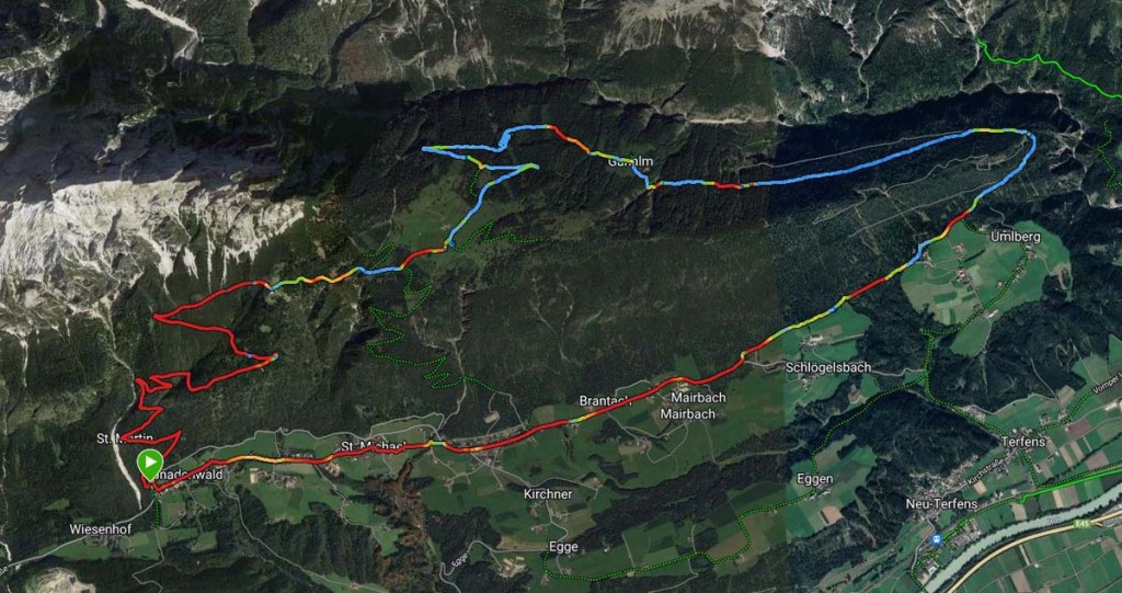 Heute ist Radltag, und das Wetter ist wieder Mal auf unserer Seite. Die Tour heute: Wir, Biggi und ich wollen über den Forstweg über dem Vomper Loch auf die Walder Alm radeln. Vor ein paar Jahren bin ich die Strecke mal mit Alfons gefahren, ich habe sehr gute Erinnerungen an die Tour und freue mich schon sehr!