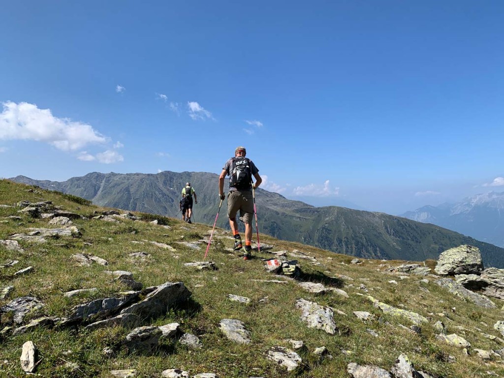 Für den Abstieg brauchen wir, auch wegen dem verblockten Gelände, fast gleich lang wie für den Aufstieg! Immerhin erreichen wir, mit feinen Gesprächen, zügig wieder die Almwiesen.