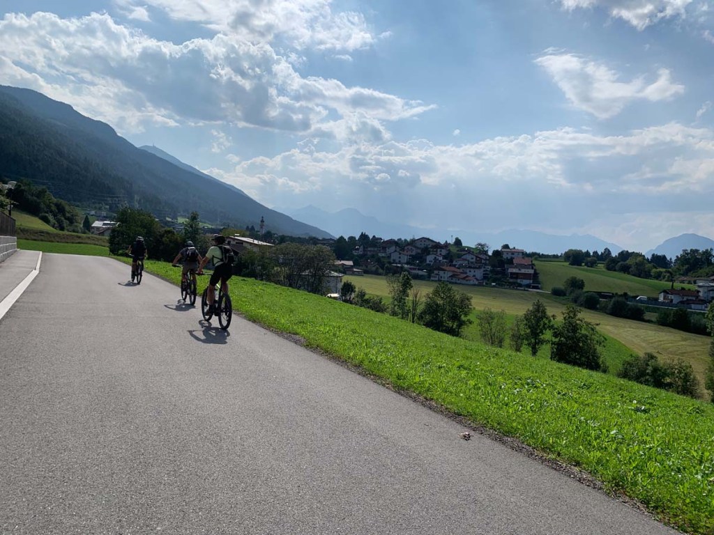 Rasch erreichen wir Tulfes, ich bin überrascht, wie angenehm die Fahrerei mit dem Rad ist. Ich konnte mir das Bike von Andi ausleihen, super gewartet und eingestellt, da macht das Fahren gleich zweimal so viel Spaß.