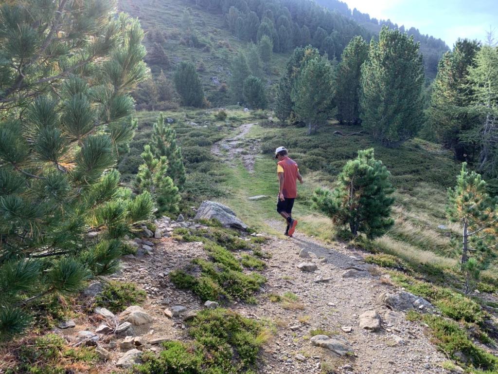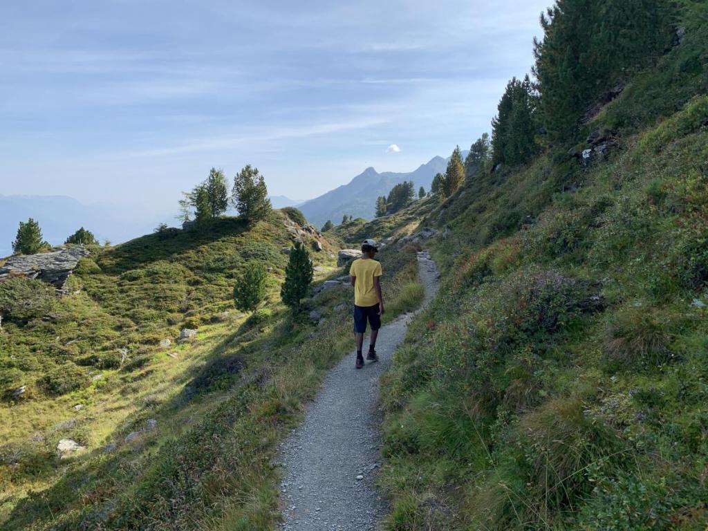Am unteren Zirbenweg entlang wandern wir flotten Schrittes wieder zurück zur Kofel-Bergstation.