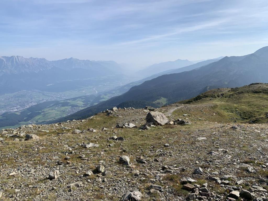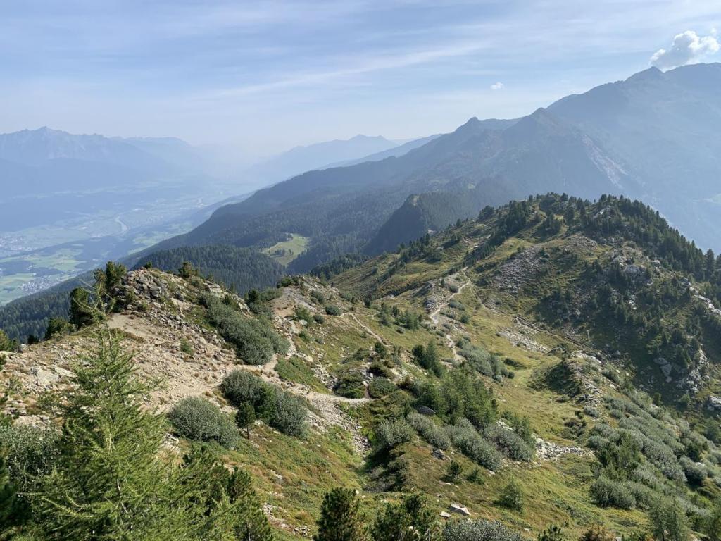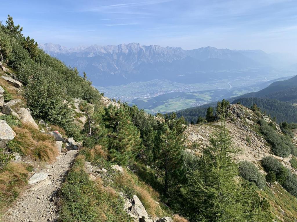 Vor uns liegen das Kellerjoch, Neuner- und Viggarspitze und die Sonnenspitze mit Glungezer. Einige dieser Gipfel bin ich gerade vor kurzem im Zuge des „Inntaler Höhenweges“ abgegangen.