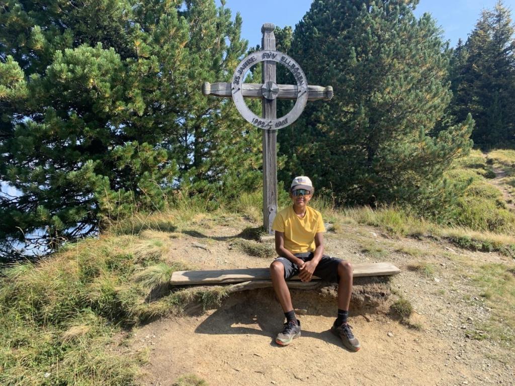 Ein wenig irritiert verlassen wir den eigentlich gemütlichen Platz, beim Kreuz machen wir noch ein Foto, das ist auch unter Umkehrpunkt.