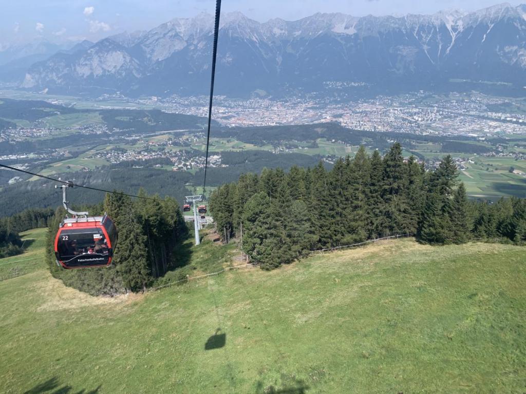 Das Essen ist wunderbar, wir genießen die Rast hier oben. Mit der Kofelbahn fahren wir wieder zurück ins Tal, und mit dem Bus, der schon auf uns wartet, geht es zurück nach Aldrans!