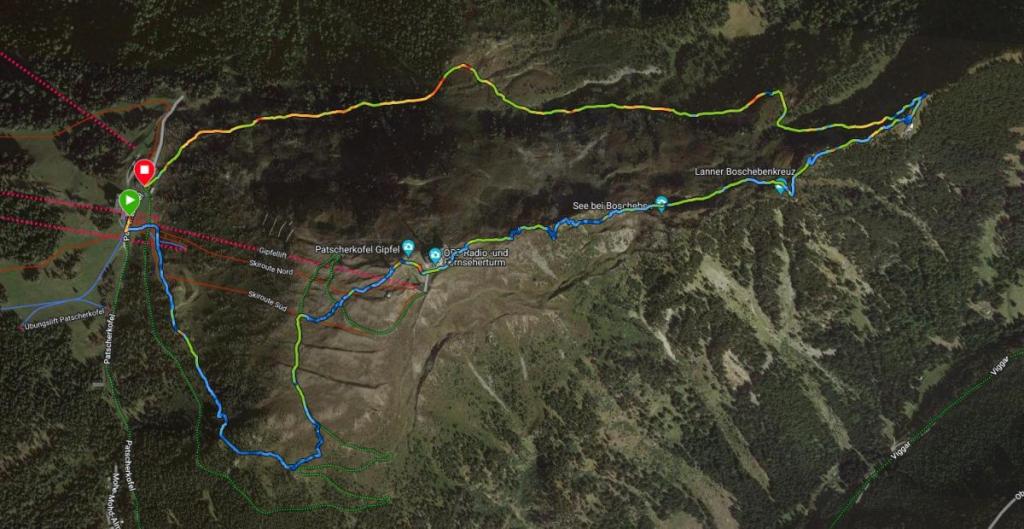 Das Wetter ist schön, aber die Zeit begrenzt. So greift man gerne auf Altbewährtes zurück. Der Kofel, fast direkt vor der Tür gelegen, wird wieder einmal zum Ziel erkoren. Mit dem Bus von Aldrans zur Talstation, dann gleich, dank Jahresticket, hinauf in kühlere Regionen.