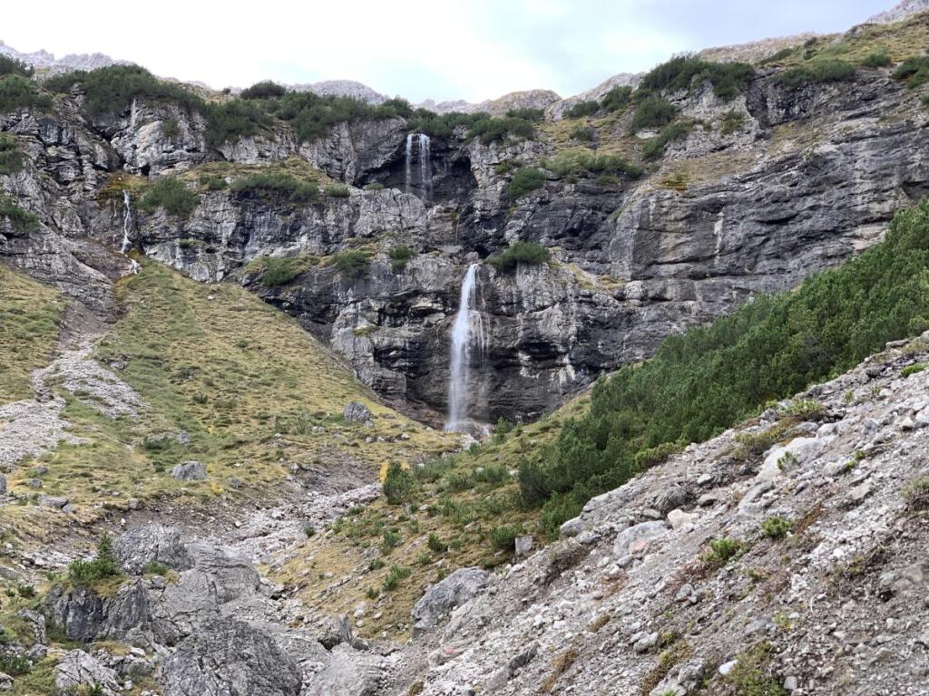 Schon von Beginn an sehen wir, dass hier gut Wasser vorhanden ist… überall, und im Besonderen am Talschluß sehen wir viele Wasserfälle.