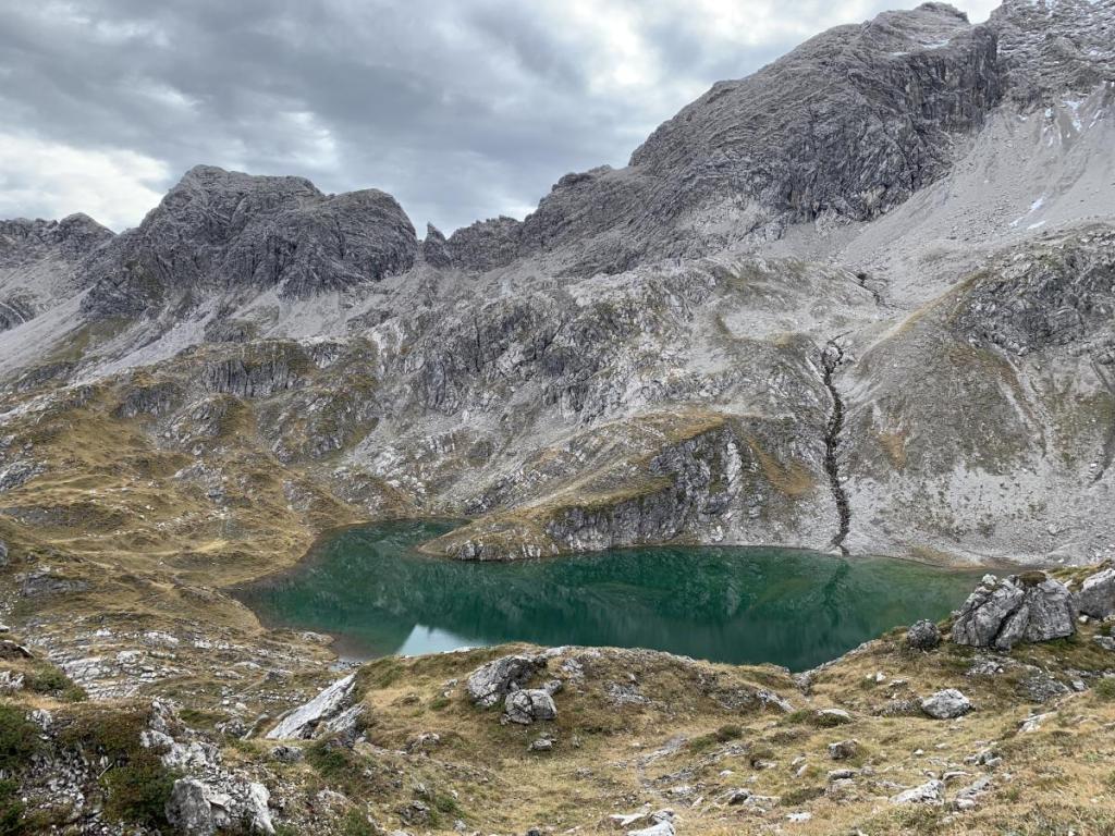 Nur noch kurz, dann stehen wir vor dem Rosskarsee. Dieser liegt in einem wunderschönen Kessel, umrahmt von sehr beeindruckenden Bergen. Nachdem wir bei einer Pause die Gegend ein wenig genauer betrachten, debattieren wir, ob diese Gegend vor nicht allzu langer Zeit noch vergletschert war.