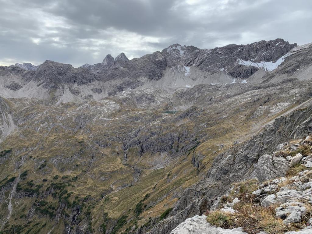 Rückblickend sehen wir nochmals die vermuteten Schrämmspuren, im Kessel des Rosskarsees. Wie schon gesagt, einfach eine Vermutung… aber eine interessante Vermutung. Und schließlich erreichen wir die Ausläufer des Hirschhalses.