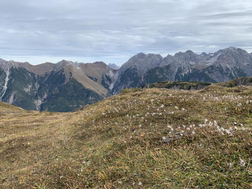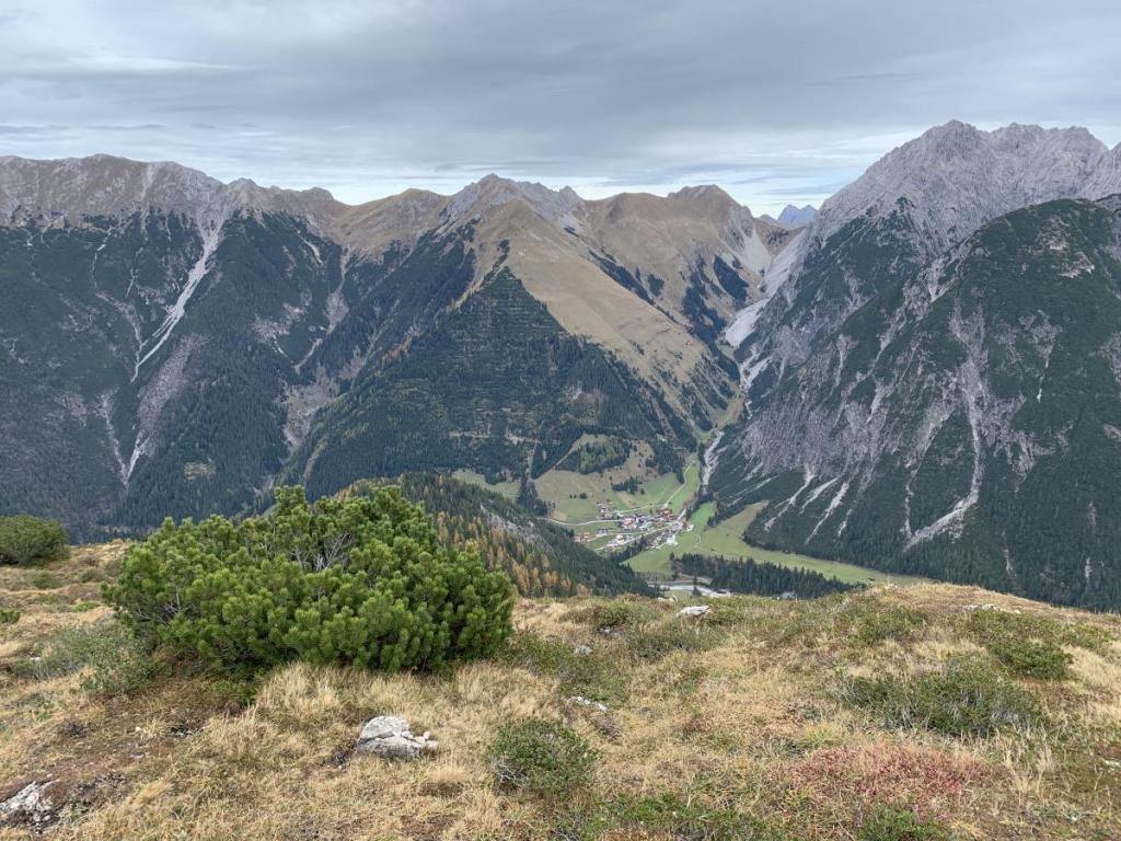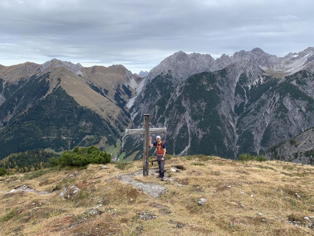 Vom Kreuz am Hirschhals haben wir einen tollen Ausblick auf Gramais und auf das Sattele, das wir 2021 begangen sind.