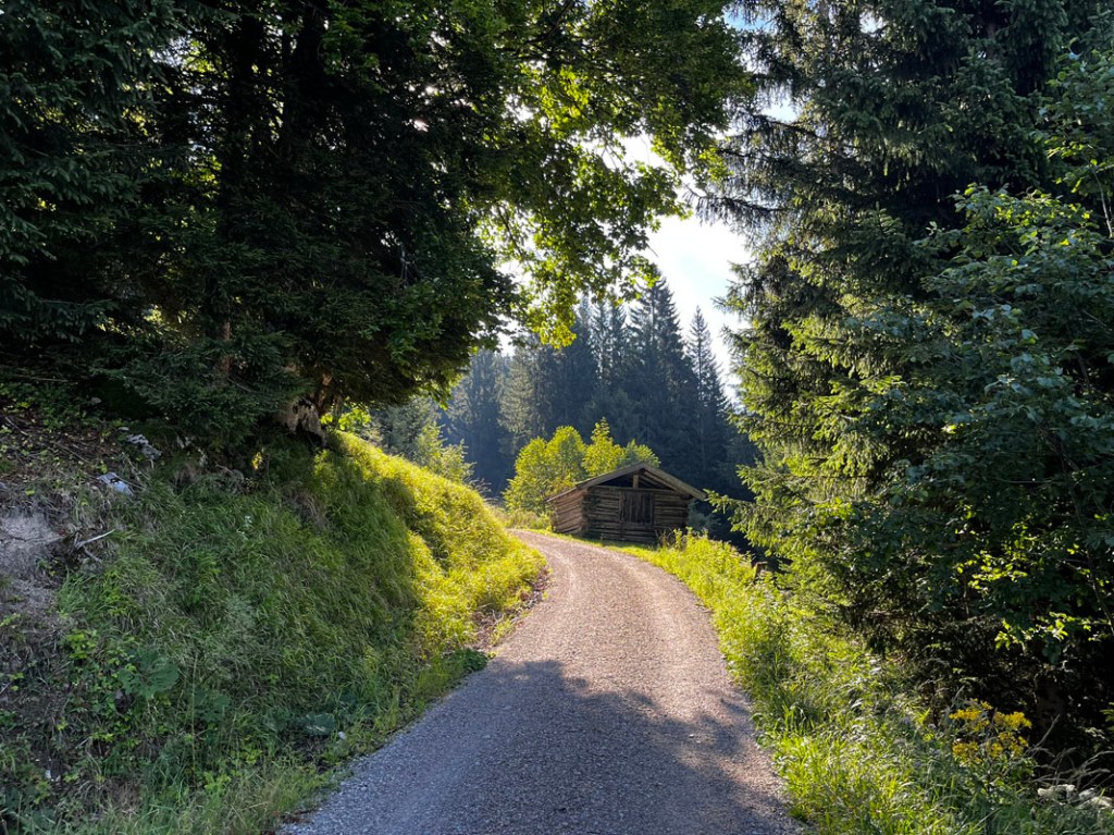 Der weitere Weg ist nur ident mit dem Aufstieg, erst über den Steig, dann die letzten Meter über den Forstweg. Schließlich erreichen wir wieder unsere Hütte.