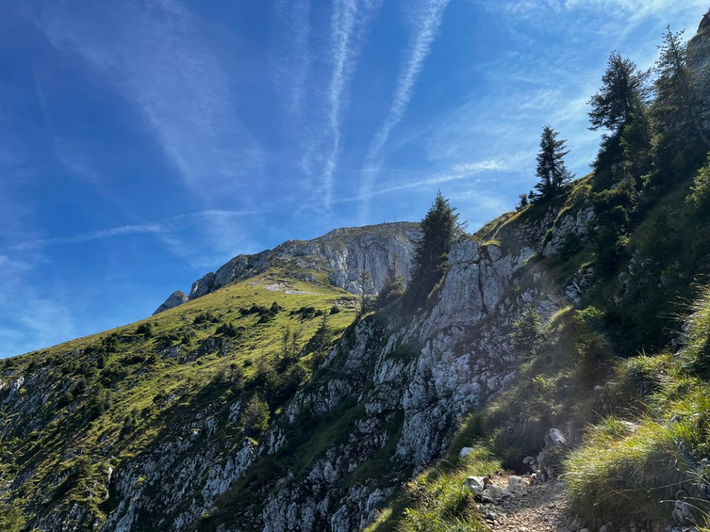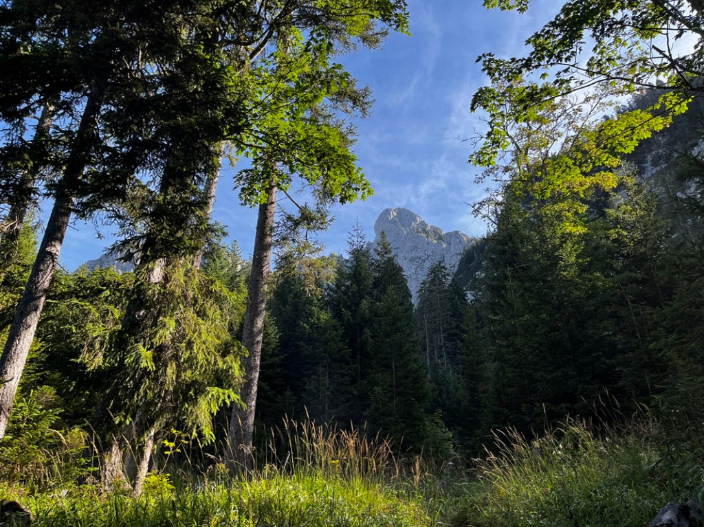 Zuerst noch ein wenig im Wald, wird die Vegetation immer lichter und wir bekommen einen Blick auf unser Tagesziel.