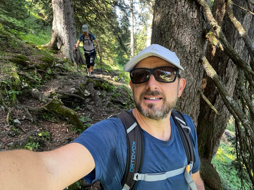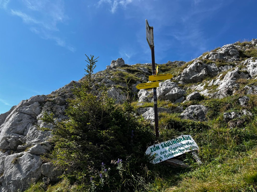 Nach einer feinen Pause am Gipfel machen wir uns an den Rückweg, dieses Mal geht es über die österreichische, bzw. Südseite hinab zu Säulinghaus.