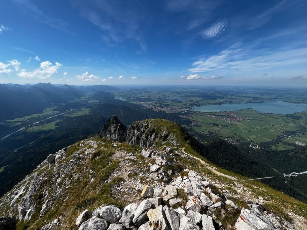 Die Aussicht auf das Alpenvorland, Tegelberg und Schloss Neuschwanstein ist wunderbar.