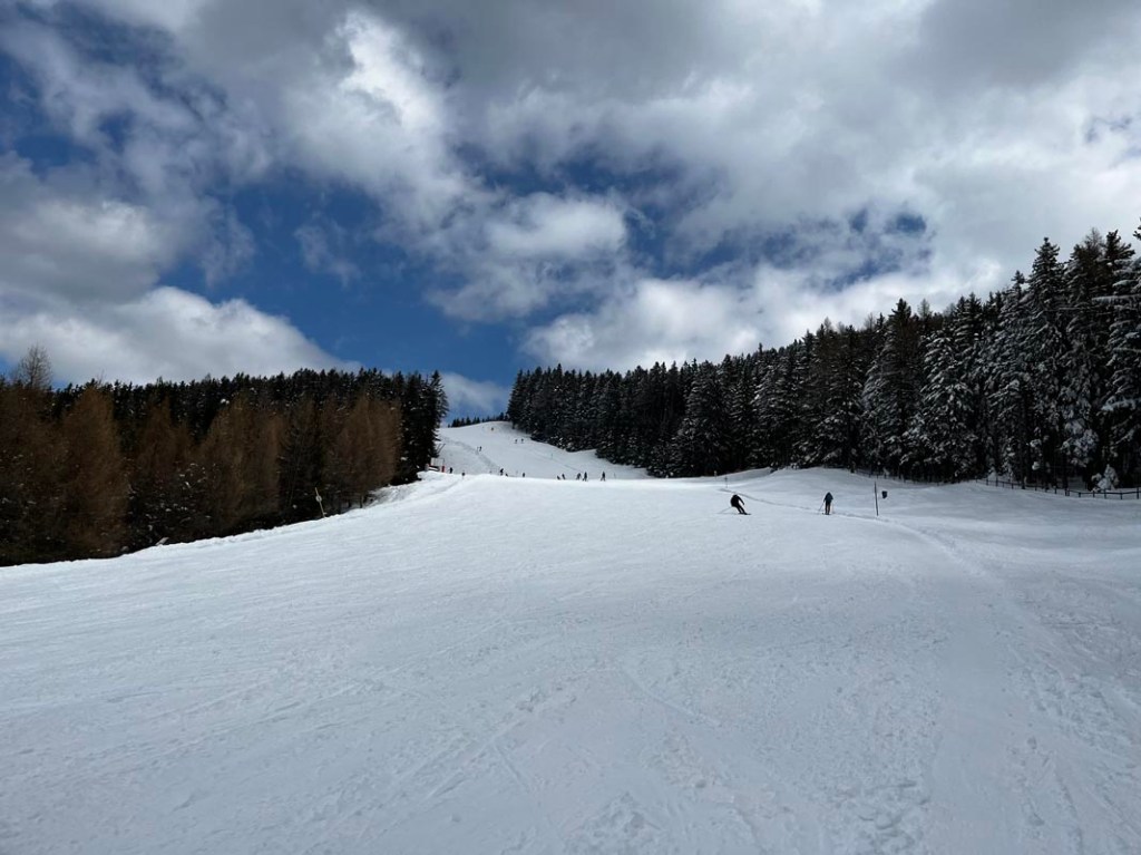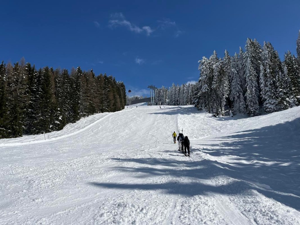 Die Abfahrt ist toll, aber anstrengend, da der Schnee nun echt schon, besonders in Talnähe, schwer ist und die Schwünge in den Oberschenkeln spürbar sind.