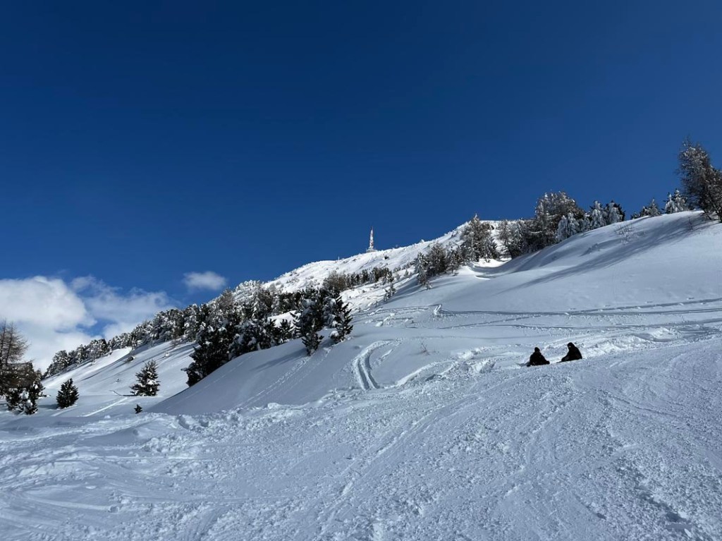 Obwohl das Wetter so fein ist, ist es dennoch sehr ruhig. Fast keine Skifahrer, und das während der Osterferien! Eigenartig…