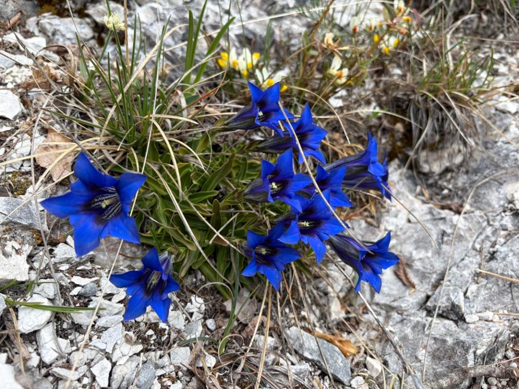 Auf dem Weg zu Gipfel entdecke ich den für mich ersten Enzian dieses Jahres. Die Blume mit dem intensiven Blau ist wunderschön anzuschauen!