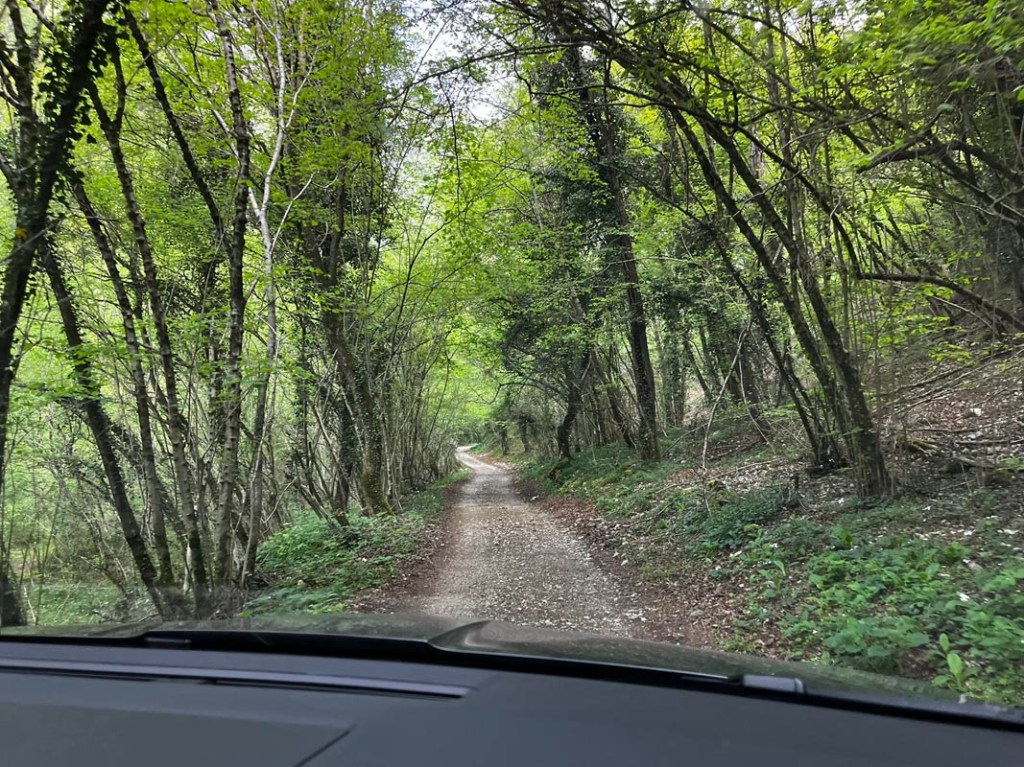 Der Weg wird immer kleiner, schmaler und ruppiger. Alfons, Maggo und ich lachen über den wilden Weg, während Papa, dem Autobesitzer jegliches Lachen im Halse stecken bleibt.