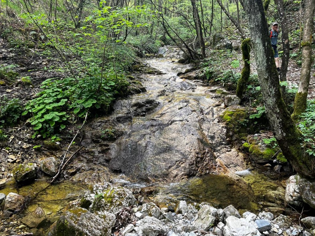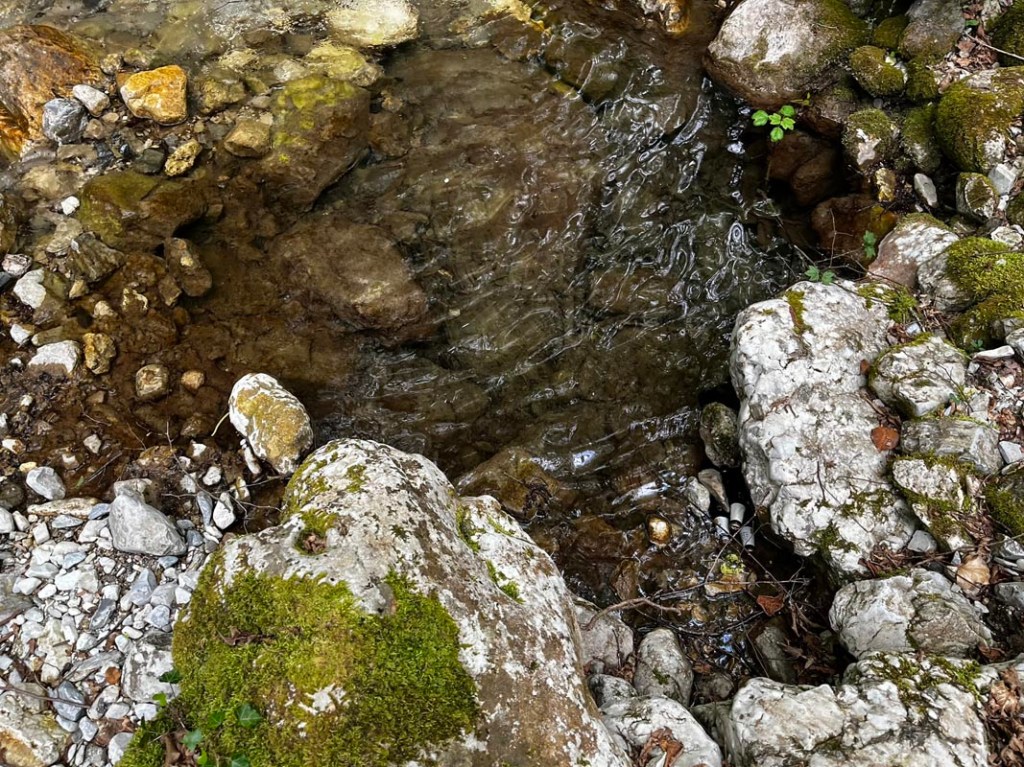 Da wir nicht wussten, ob die Hütte offen ist, haben wir im Bach 4 Bier eingelagert. Hier im Wald ist es Windstill, da kann ein kühles Blondes kein Fehler sein.