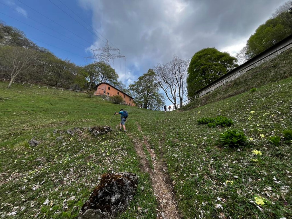 Nach einiger Zeit verlassen wir das Bachbett und steigen nach Rechts, über Serpentinen immer höher hinauf, in Richtung Passo di Spino. Es wird ein wenig trockener, dennoch blühen hier schon allerlei Pflanzen.