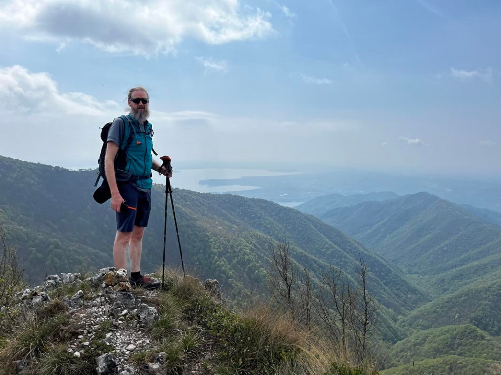 Schließlich erreichen wir eine Kuppe, von der aus wir nun den See sehen können. Auf der vorgelagerten Landzunge liegt „San Felice del Benaco“.